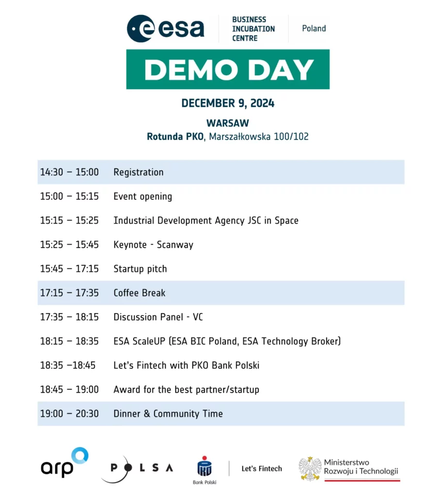 The Demo Day will bring together the entire ESA BIC Poland ecosystem—startups, industry leaders, partners, and investors—to foster collaboration, showcase groundbreaking ideas, and highlight advancements shaping the future of the space industry. As the first in a series of events, it sets the stage for celebrating the most innovative Polish space startups and their remarkable achievements.